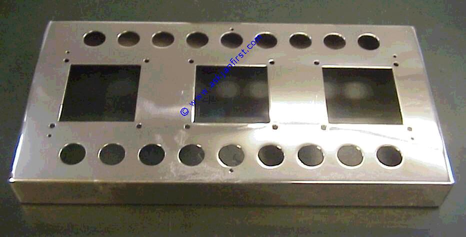 Produktbild   TAT0747 ACHTUNG: Verchromtes Edelstahlgehäuse für STEREO-Röhrenverstärker. Ausschnitte für Netzteilplatine (Elkos), Röhren, Netz- und Ausgangstrafos ( M102) und die nötigen Anschlüsse. Wir haben nur einen kleinen Bestand dieser Gehäuse. Kleine Kratzer können vorhanden sein. Aus Produktionsauslauf einer Verstärkerfertigung. Chrome plated inox-steel chassis for stereo amp. For three transformers ( M 102), tubes and electrolytics. May have some small scratches. Never used. Comme TAT0747 mais pour trois transfos ( alimentation et 2* sortie) M 102, neuf, jamais utilisés