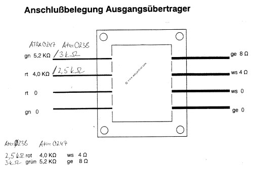 PP,  30 W, Raa = 5 kOhm (5 kOhm ct.): 4-8-16 Ohm, ultralinear PM95, sonst wie ATH34 PP,  30 W, Raa = 5 kOhm (5 kOhm ct.): 4-8-16 Ohm, ultralinear PM 95, sonst wie ATH34 PP,  30 W, Raa = 5 kOhm (5 kOhm ct.): 4-8-16 Ohm, avec prise d´écran PM 95, sonst wie ATH34 99,40