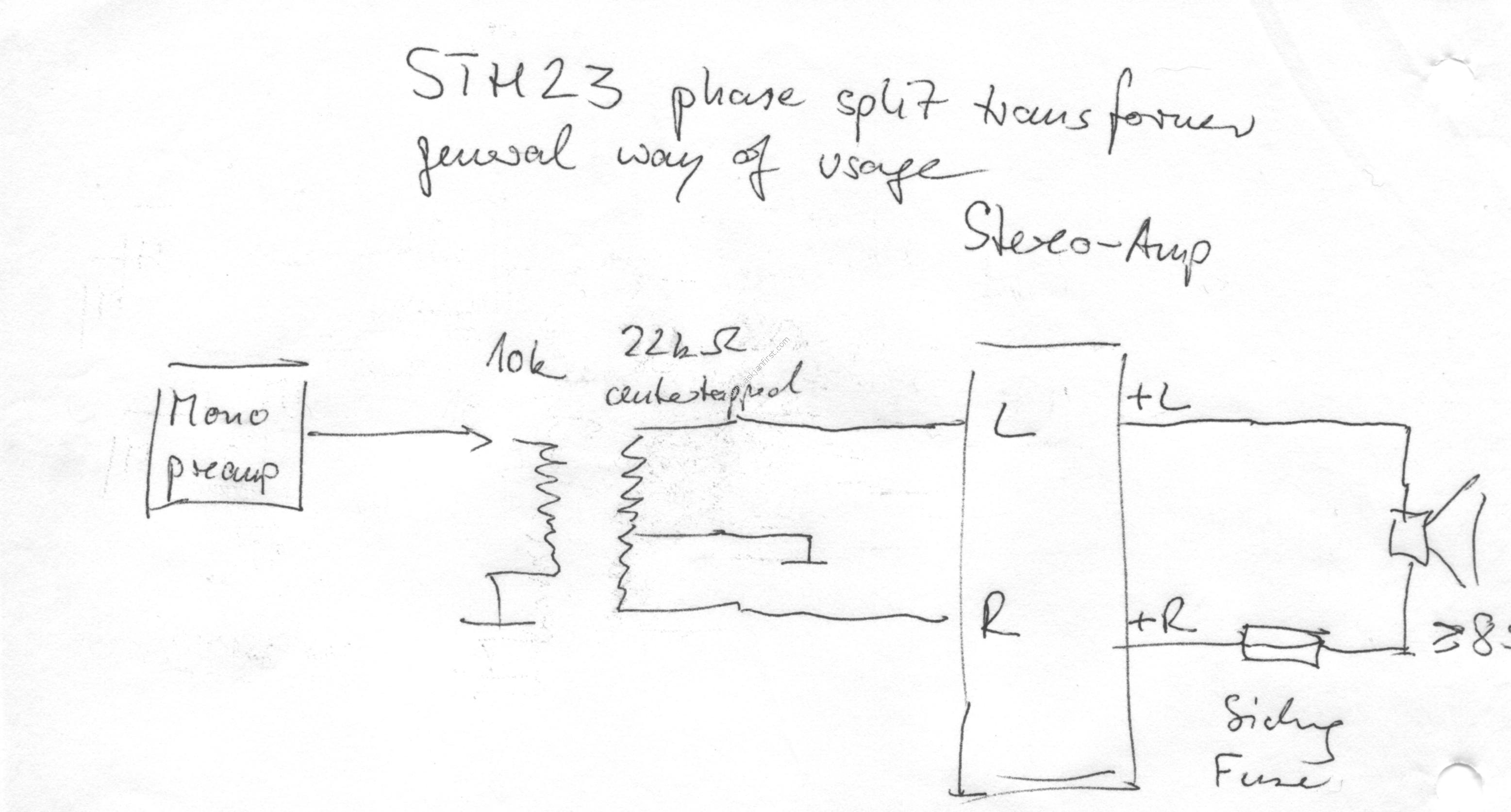 Phasenwender zur Brückenschaltung von Stereoendstufen als Mono-Brücke, 10 kOhm auf 22kOhm mit Mittlelabgriff, PM 61a Phase inverter used to bridge amp outputs. Inverteur du phase pour utilsier deux amps pour un seul haute parleur. 69,23