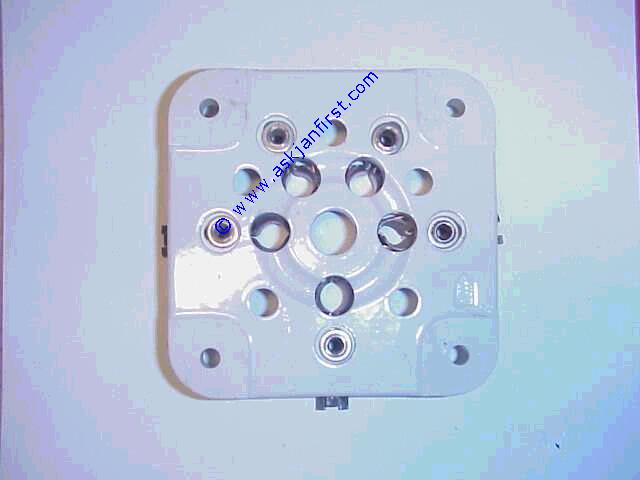FAS011 | Fassung Chassis Oktal Kunststoff Spezialversion für mag. Augen, kreisrunde Scheibe ohne Befestigung, Gebrauchtware | 8 pin octal special version without mountings for tuning indicators like EM34. Used | octal plastique, version speciale pour les tubes-indicateurs comme EM 34 etc. Occasion | 1,20 | 1,43 |