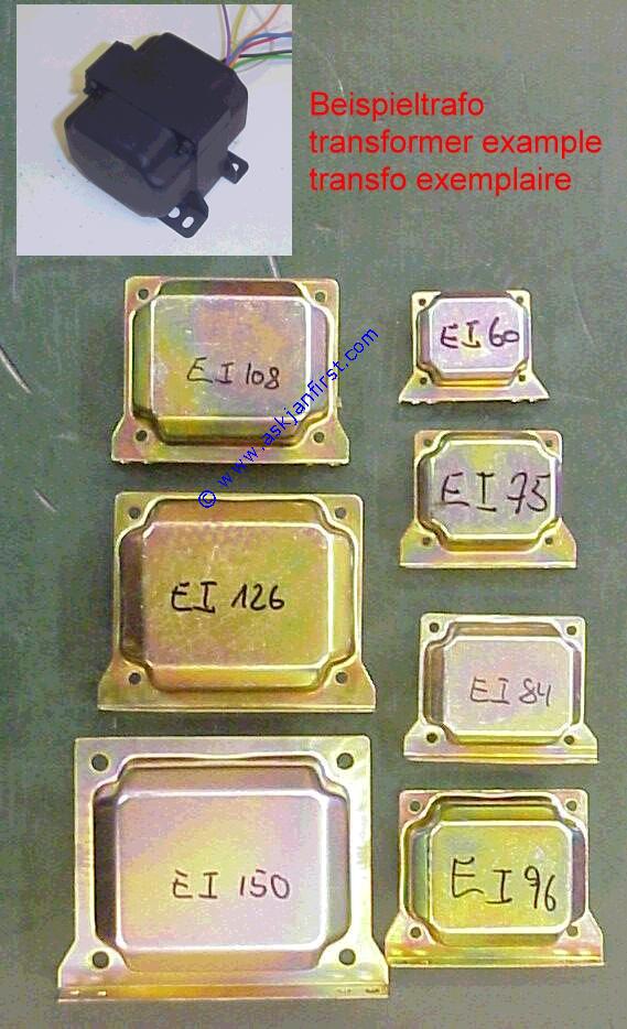 | Wir liefern ein umfassendes Sortiment Trafos, jedoch kein Halbzeug zum Trafo-Selbstbau. z.B. Kernblech, Spulenkörper, CuL-Draht etc. | We do not supply transformer parts like laminations, wire bobbin holder etc. | Nous ne fournissons pas les tôles et fils pour transformateurs. | ||||||
